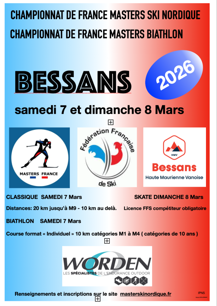 Les derniers Championnats de France Masters de ski nordique et le challenge national Biathlon se sont tenus à Bessans (Savoie) les 29 et 30 mars 2025. Les prochains championnats se dérouleront à nouveau à Bessans les 7 et 8 mars 2026.